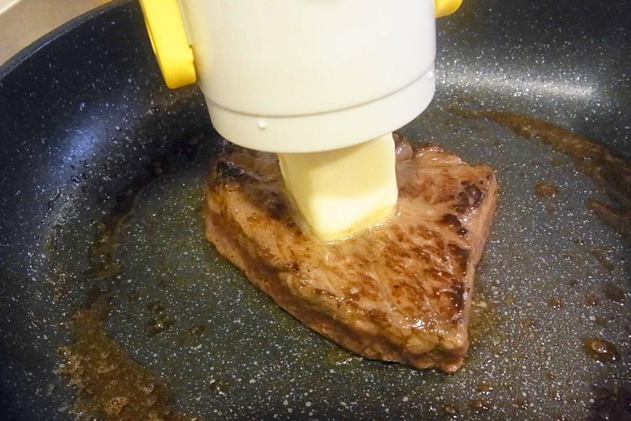 カットしたバターをセットしたら、あとは塗るだけです。調理の際に、フライパンに塗るのにも使えます。肉や魚を焼くたびにバターを切ってフライパンに落とす…という作業がなくなります!