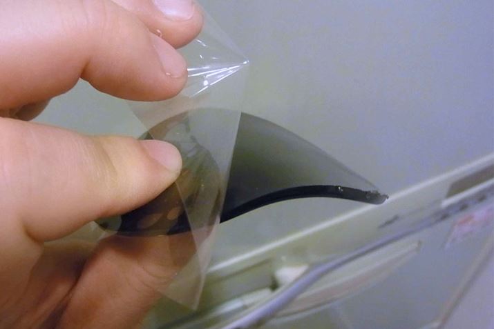 使うときは、シートをはがして気に入った場所に貼り付けるだけ。ガラス、プラスチック、金属などの表面が滑らかな場所がベターです。今回は冷蔵庫の扉に貼ってみました