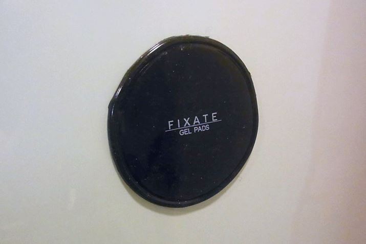 筆者が購入したのは、「フィックスエイト(FIXATE)」というジェル系の粘着パッド。特長は世界最強ともいわれる強力な粘着力。メーカーのリリースによれば、最大粘着力はなんと1.5kg! 1.0kgまでなら保持が可能で、しかも、汚れたりして粘着力が落ちても、水洗いすることで500〜1000回は繰り返し使えるとのこと。それでは、どの程度強力なものかさっそく試してみましょう。