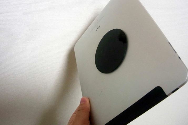 680gもの重量がある初代iPadをくっつけてみましたが、ご覧のとおりまったく問題ありませんでした。この粘着シートを使えば壁掛けモニターとしてなど、iPadをいろいろと手軽に使えそうです。