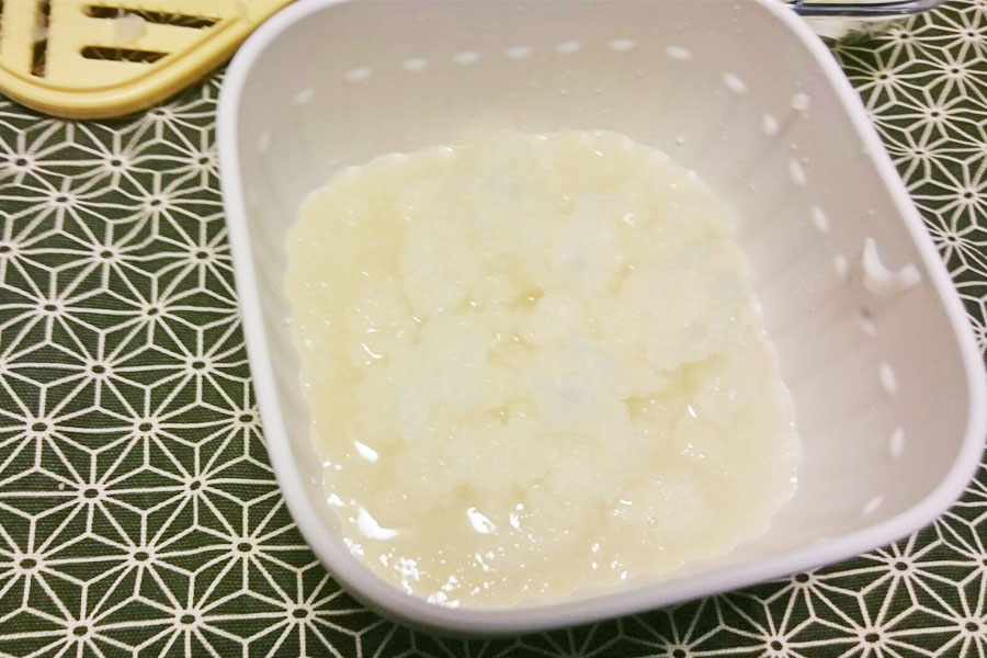 さっそく大根おろしを作っちゃおー! 円を描くようにゴリゴリゴリゴリ…。小さいが、しっかりおろせる。