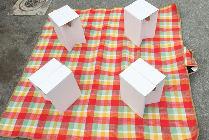 広げるときはマジックテープをバリッとはがすだけなので、とっても簡単です。説明書には「2〜3人用」と記述されていますが、140×140cmと大きめのサイズなので、お弁当を広げても4人くらいは座れそうな感じがしました。表面がアクリル100%なので、寒暖差の激しい時季にもうってつけの暖かさです。