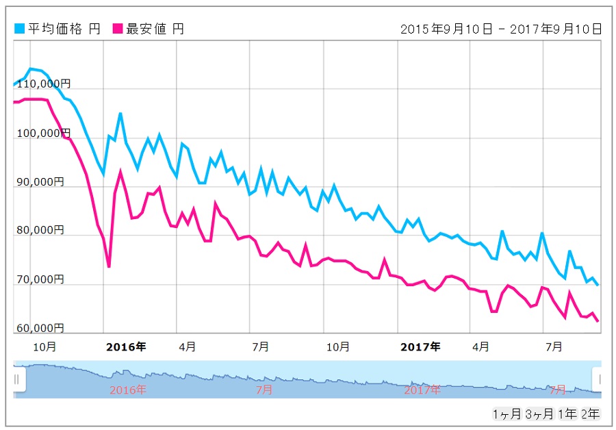 メーカーの人には申し訳ないのですが、安く買うための第一の心得は「待ち」です。基本的に商品の価格は時間を追うごとに値下がりしていきます。
