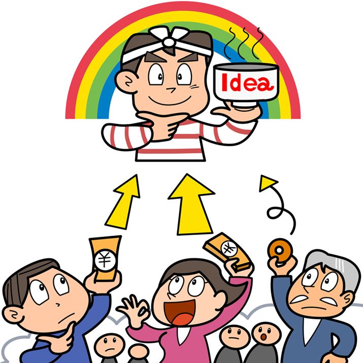 購入型クラウドファンディングとは、ユニークな企画や面白いプロジェクトの起案者に対してお金を渡すとその金額に応じた商品やサービスを受け取れる仕組みです。投資よりも買い物に近いといえるでしょう。
