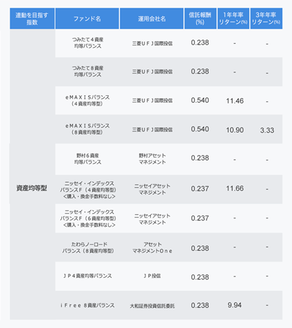 異なる運用会社の資産均等型ファンドであっても、同じ資産を同じ比率で組み入れているのであれば、運用実績に大きな差は生じません。そのため、長期運用の場合には、信託報酬を比べることが重要です。