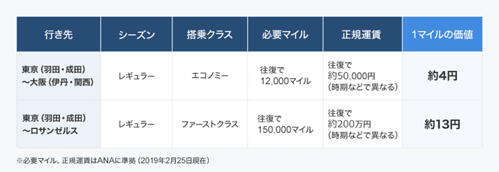 菊地さん:「しかもマイルの価値自体が、使い道によって変化するのも、初心者にはわかりにくい点です。以下の表をご覧ください」