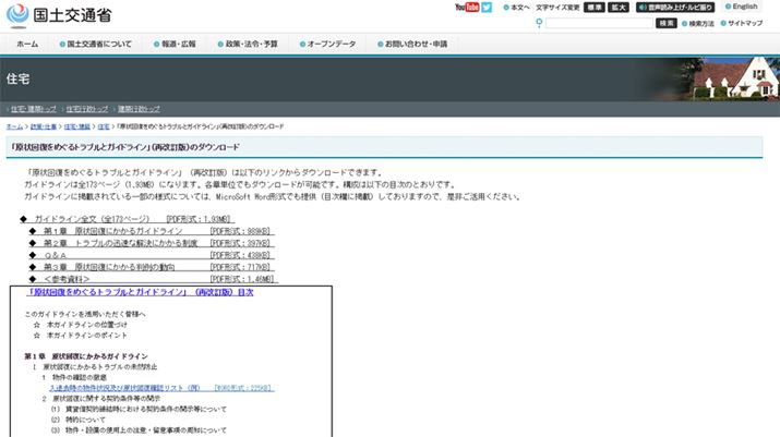 国土交通省のHPでは、「原状回復をめぐるトラブルとガイドライン」が全文公開されています。