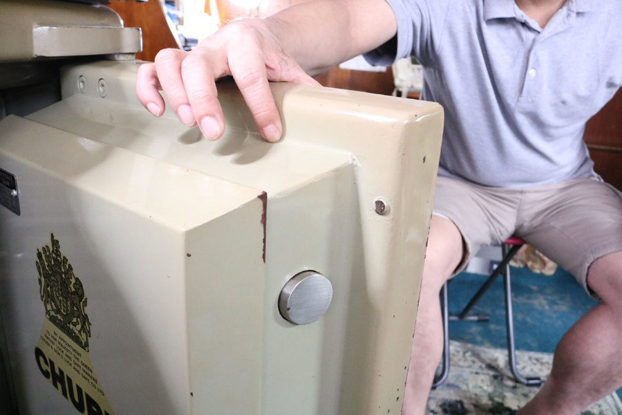 「ふつうなら、戦後にアメリカ軍が接収するでしょうね。入手したのはやはり私の親父です。断片的に聞いていた入手の経緯をまとめますと、昭和30年代のある日、親父がある同業者を訪ねました。その流れで倉庫に行くと片隅にこの金庫が置いてあったそうです。親父は見た瞬間に陸軍が特注した戦前の金庫だとわかったそうです。日本全体で30台ほど製作されたものの1台だと。でも同業者はそのことを知らない様子でした」(杉山さん)