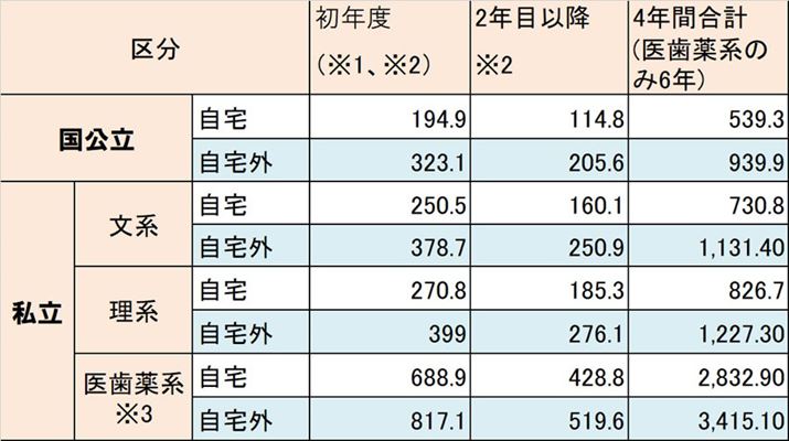 〈図表2〉大学でかかる学費・生活費の目安(万円)