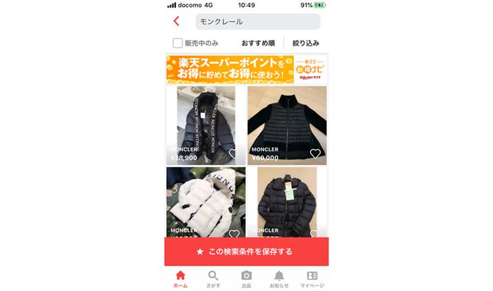 ラクマにはフランスの高級メーカー「モンクレール」のダウンなど、高価なアパレルも多数出品されています
