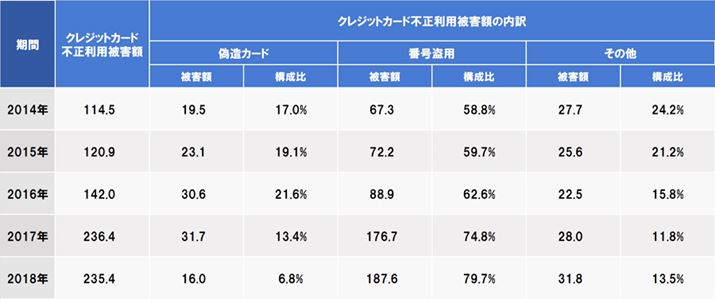 ちなみに、前出の日本クレジット協会の調査では、2018年の不正利用の内訳は下記のようになっています。