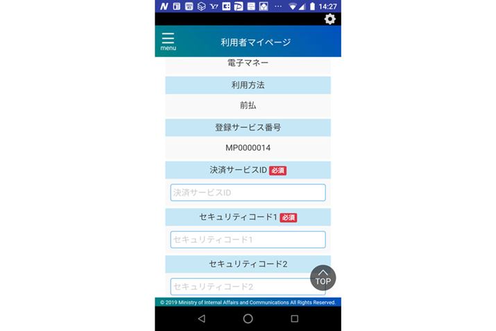 (3)選択した決済サービスの「決済サービスID」と「セキュリティコード」を入力