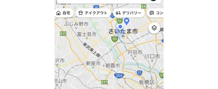 Googleマップの検索窓のすぐ下に「テイクアウト」と「デリバリー」の検索フィルターボタンが追加されています