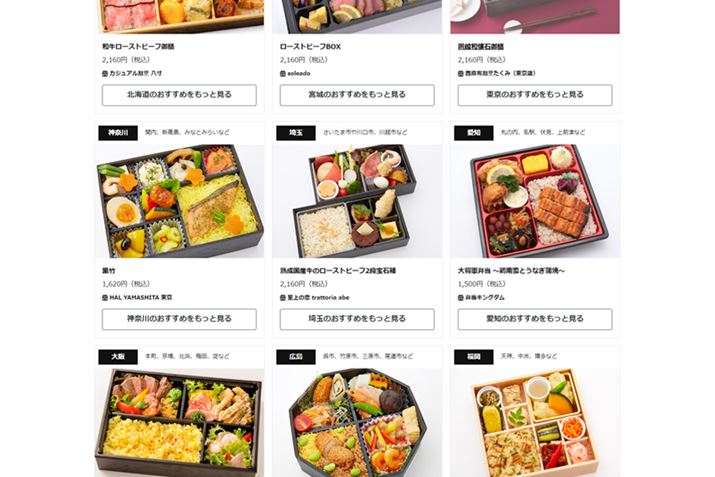 元々は全国のオフィスやイベント会場への弁当の宅配やケータリングを請け負うフードデリバリーサービスです。9,300種類以上のメニューを展開し、中心となるのは1,500〜2500円程度の高級な弁当です。契約店舗は約860店で、なかにはミシュランの星付き名店や、行列ができる人気店なども含まれます。現在は、外出自粛の影響による個人利用のニーズにも対応し「自宅で楽しむ宅配弁当特集」ページなどに1個から配達可能なメニューが多数掲載されています(配送料は店舗やエリアによって異なります)。少々値は張りますが、ちょっと贅沢したいときに使ってみたいサービスです。