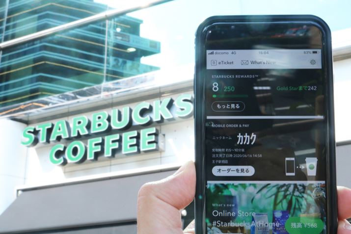 続いて、スターバックスコーヒー(以下、スタバ)のモバイルオーダーです。正式名称は「Mobile Order & Pay」で、2019年6月にサービスがスタート。現在は、都内の大型店で導入されていて、対象店舗は順次拡大予定とのこと。