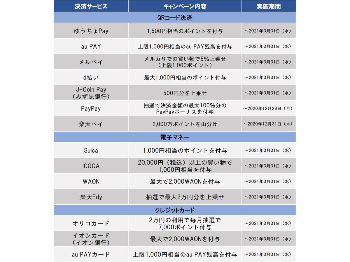 「電子マネー」では4つのサービスがキャンペーンを実施中(2020年12月15日時点)