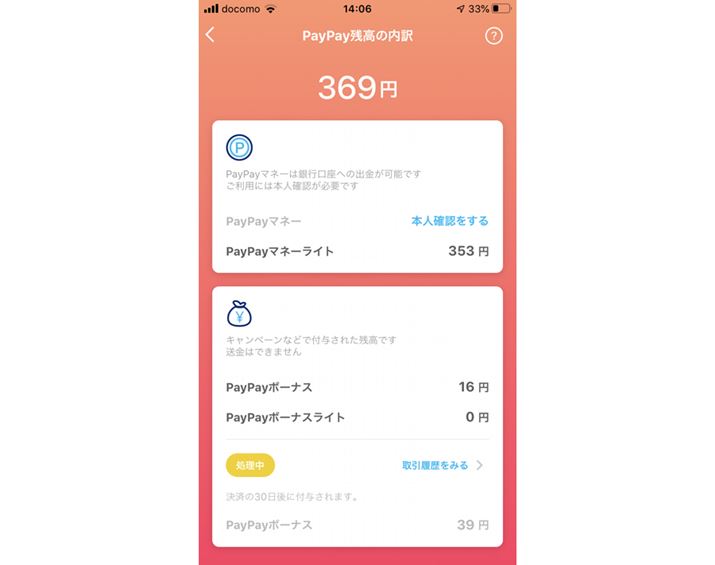 ちなみに、自分が持っているPayPay残高の内訳を知りたい場合は、下記の画面で確認することができます。