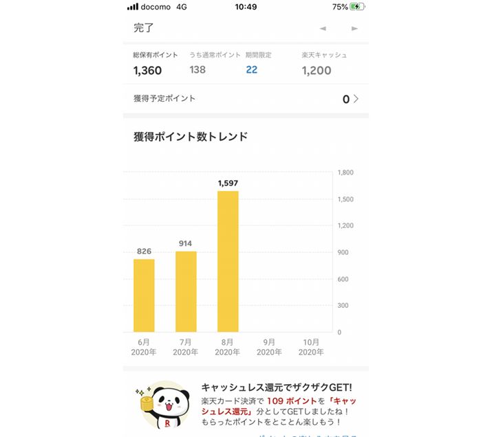 楽天「ポイント運用」の運用結果。わずか1か月の運用期間にもかかわらず、ポイントの増減に一喜一憂