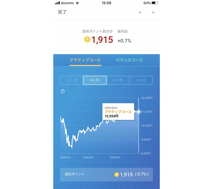 ・dポイント「ポイント投資」……運用ポイント:dポイント