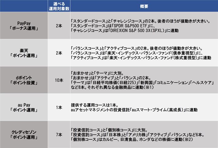 ・楽天「ポイント運用」……運用ポイント:楽天スーパーポイント