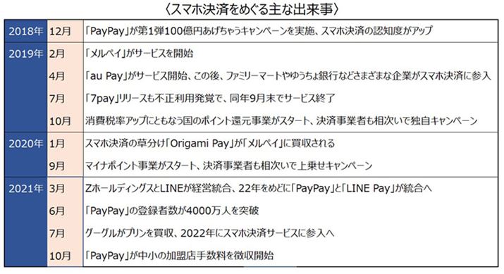 それから2019年の中ごろにかけて、ネット企業や大手通信会社、金融機関などがスマホ決済サービスを相次いでリリースし、一時は20を超える企業が参入するなど、乱立状態となっていました。ただ、2020年ごろになると優勝劣敗が鮮明になってきました。象徴的だったのが、スマホ決済の草分け的存在だった「Origami Pay」が多額の赤字に直面し、「メルペイ」に買収されたことです。