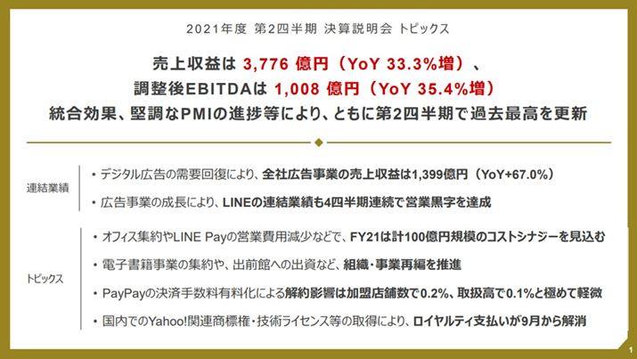 ※画像は、Zホールディングス第2四半期決算説明会資料より。トピックスの項で決済手数料有料化後の加盟店の解約について触れられています