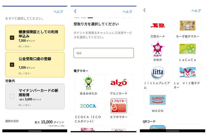 付与されるポイントは、対象の決済サービスの中から希望するものを選べます。そして、健康保険証についてのポイント還元が始まったのは2022年6月30日ですが、これ以前に健康保険証としての利用申し込みをした場合も、ポイント還元の対象になります(この場合、6月30日以降にポイントの申し込みが必要です)。