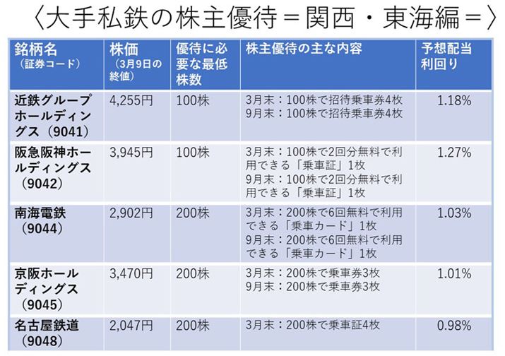 このほか、成田、羽田、関西空港などでの宅配サービス300円割引券5枚やレンタルWiFi20%割引券などが用意されています(この優待を受けるには500株の保有が必要)。京成電鉄の株価は3月10日時点で4,015円なので、100株なら401,500円で優待を受けられます。予想配当利回りは0.42%になります。