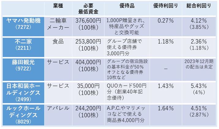 藤田観光の株価は11月24日時点で4,040円なので、100株なら404,000円で優待がもらえます。2023年12月期の配当予想は未定としています(優待利回りは算出できませんでした)。