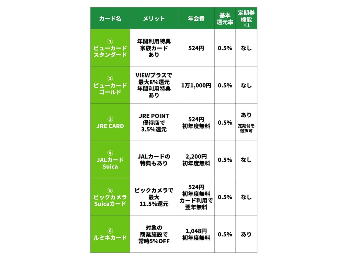 ここからは、「ビューカード」の主要6券種を紹介していきます。