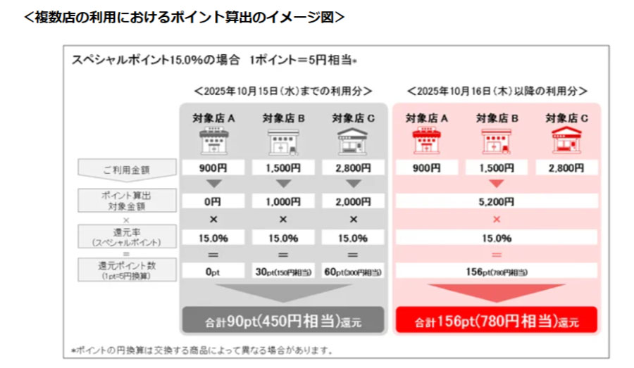 ・全対象店の金額を合算し、1,000円未満の利用分も還元対象