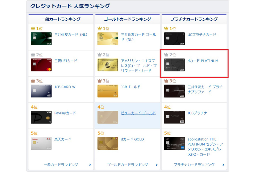 「dカード PLATINUM」は、価格.comプラチナカード人気ランキングで2位に入っている注目のカード(2025年9月30日現在)