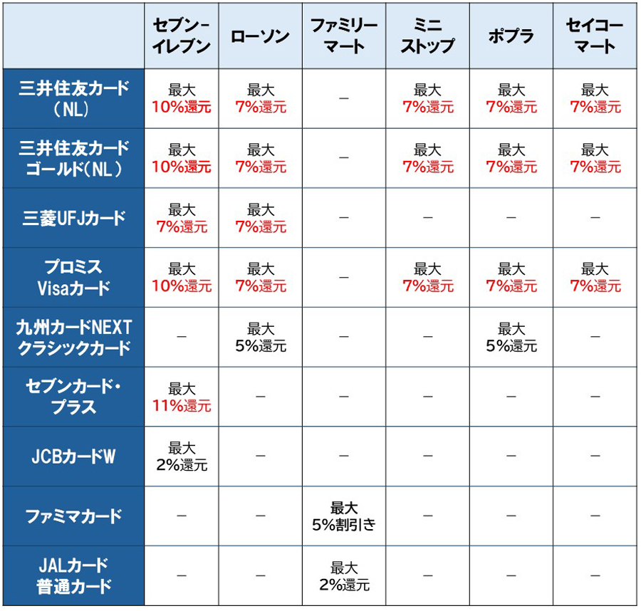 本記事掲載のクレジットカードとおトクになるコンビニ一覧