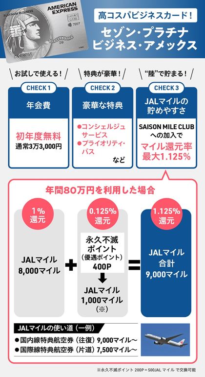 「JALマイル」がおトクに貯まる「セゾンプラチナ・ビジネス・アメリカン・エキスプレス(R)・カード」は、年会費以上のメリットが期待できる1枚