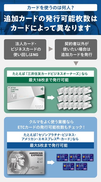 • 「追加カード」を最大9枚、ETCカードを最大10枚まで発行できる