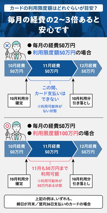 しかし、利用限度額はコーポレートカードに比べて低いことが多く、従業員が使える「追加カード」の発行可能枚数も少ない傾向があります。