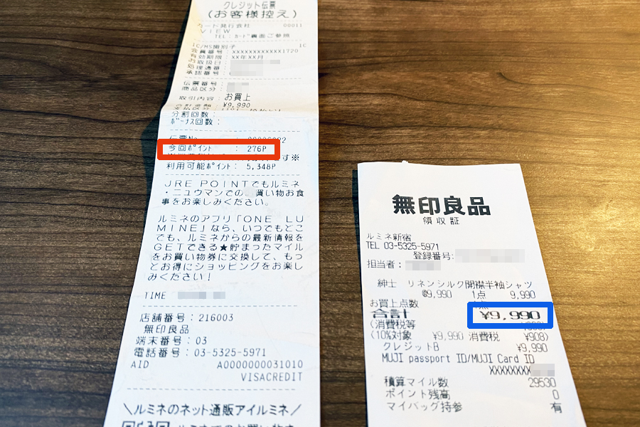 高還元カードは、高い買い物になるほど魅力が増します。それを実感したのが、「ルミネ新宿」に入っている「無印良品」での買い物に「JRE CARD」を使ったときでした(編集部・野)。