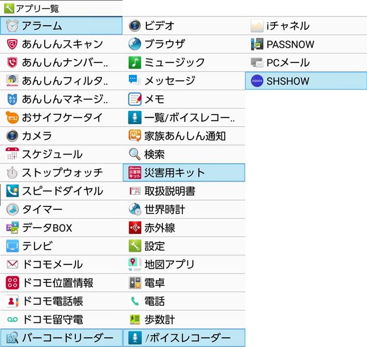 また、スマートフォンのアプリやiアプリのように、機能を追加することは原則としてできず、プリインストールされているアプリのみを使うことになる。主なプリインストールアプリだが、Webブラウザー、カメラ、スケジュール、時計、ドコモメールおよびPCメール、音楽再生(ハイレゾ非対応)、テレビ(ワンセグ)、地図アプリ(ドコモ地図ナビ)など実用本位なものが中心で、ゲームやSNSなどのアプリはない。