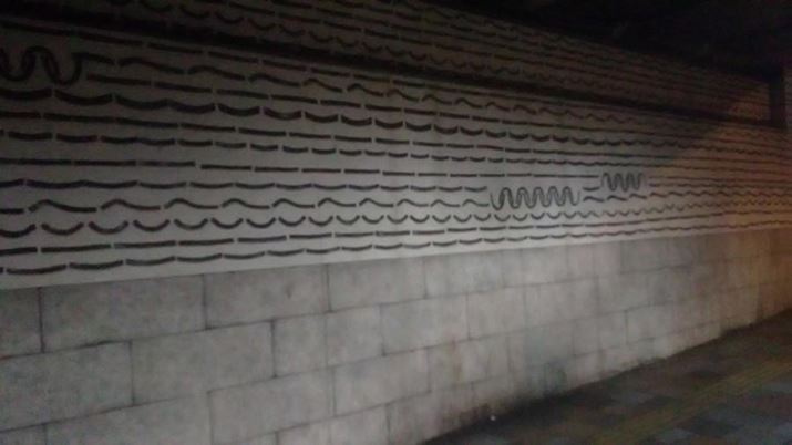 夜中に、築地塀を模したコンクリートの壁を撮影。被写体までの距離はおよそ4m程度。ピントを構図中央に合わせているが、ぼやけ気味だ。同じような構図で10ショット以上撮ったが、仕上がりはどれも同じような傾向で、夜景には弱い