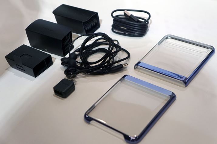 同梱品は、専用の樹脂カバーやUSBケーブルおよびUSB→USB Type-C 変換アダプタ−、USB Type-C接続のイヤホンなど。USB Type-C→ヘッドホン端子の変換アダプターは含まれない