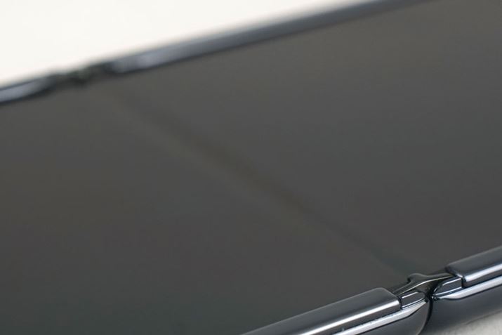 ディスプレイの保護カバーを折り曲げられる特殊なガラス製に変更したことで、折り目は目立ちにくくなったと言うが、まだハッキリ認識できる