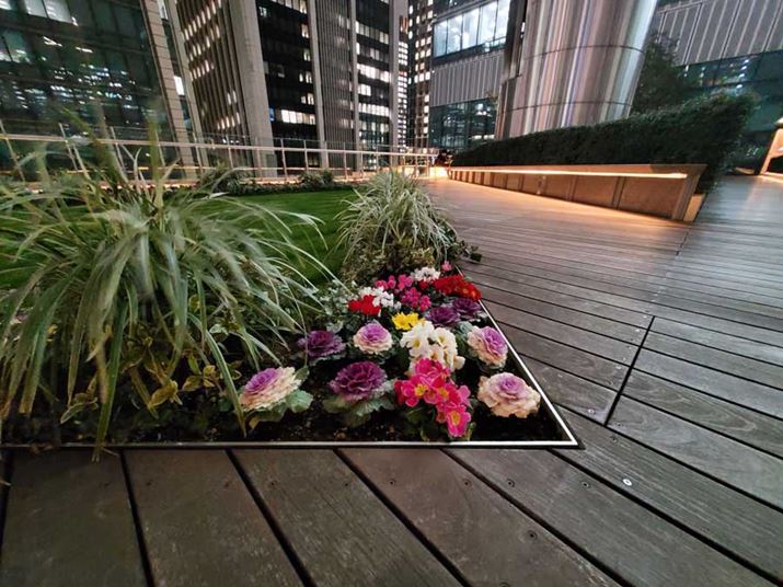 夜の花壇を撮影。肉眼ではかなり暗いのだが、曇りの日中程度の明るさが確保されている。ノイズも少なく、手持ちにもかかわらず手ブレも目立たない
