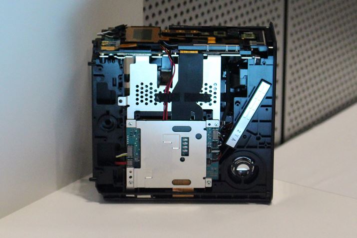 Xperia Touchのスケルトンモデル。内部にはパーツがぎっしりと詰め込まれいる。プロジェクター部分に冷却ファンが配置されており、わずかだがファンの回転音もする