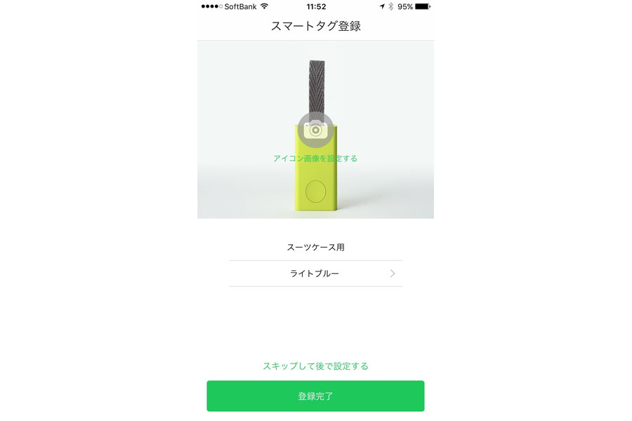 アプリを立ち上げたら、Qrioに電池を入れて同期。名称や写真を設定できます。複数のQrio Smart Tagも登録可能