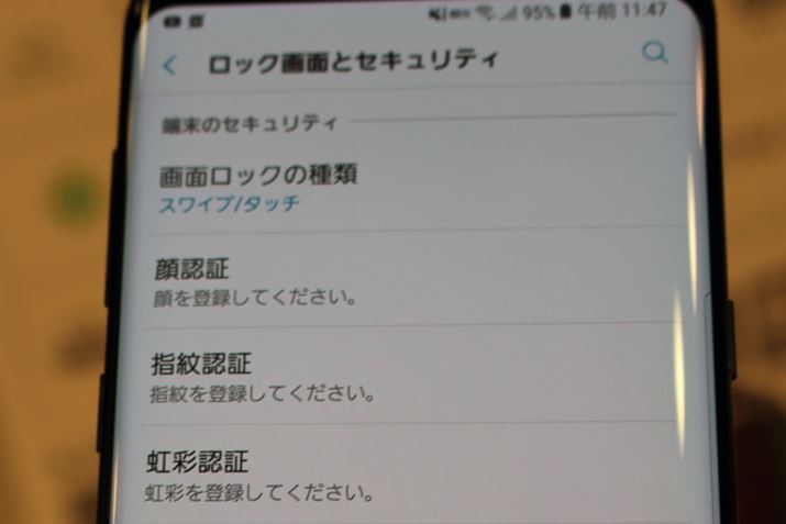 指紋認証、虹彩認証、顔認証の3種類の生体認証に対応している点もGalaxy S8と同じ。なお、顔認証は、Android標準機能ではなく、サムスンが独自に開発したもの
