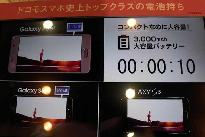 このクラスのスマホとしては大きい3,000mAhの大容量バッテリーを搭載。電池持ち時間は約170時間と、歴代のNTTドコモのスマートフォンの中でも相当のスタミナぶりだ