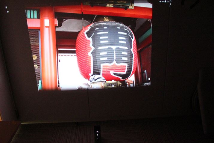 最大80インチの投影が可能。輝度が100lmしかなく、画面を広くすると輝度が不足するので、部屋を暗くする必要がある。背景が白ならば、画質はかなり良好