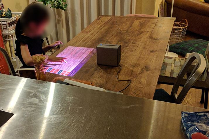 続いて、5歳の子どもに実際に「Xperia Touch」を使わせてみた。子どもにタブレットやスマートフォンを使わせる際に気になるのは落下による破損であろう。その点、本体をもつことのない本機なら、本体を落下させることは考えにくいし、投影された画面をラフにタッチしても問題はない。加えて、子どもが今タブレットで何をしているのかを離れた場所からでも把握しやすいのは、本機ならではのメリットだ。“子どもも使うタブレット”という点で見ると本機はかなり魅力のある存在だ。