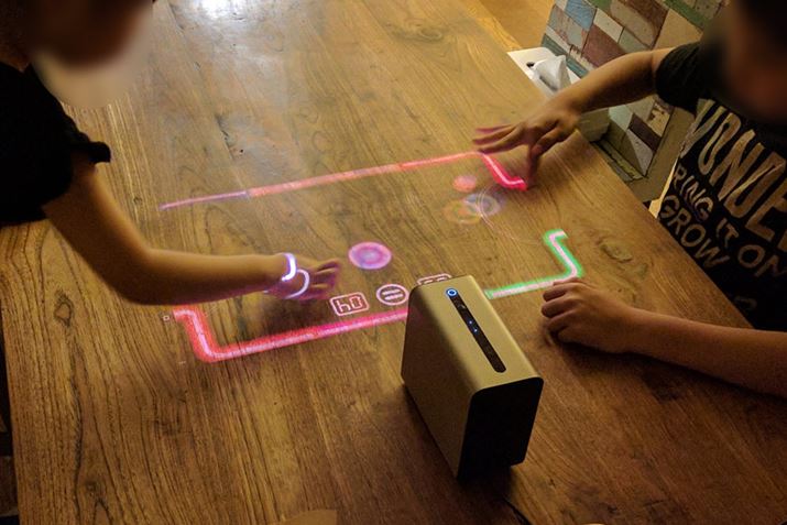 次にゲームアプリで遊んでみた、本機で投影できる23インチの大画面にあわせて操作すると必然的に体が動くうえに、テーブルゲームやエアホッケーなど対戦ゲームの場合、楽しさが倍増する。遊びなれたゲームでも、ユーザーインターフェイスが違うため新しい楽しさが発見できたのは収穫だった。また、複数人で楽しむコンテンツのひとつとして、ビデオチャットも有望な用途だろう。本機にはカメラやマイクも搭載されているので、プラスの出費は不要で、大画面を使った多人数のビデオチャットが利用できる。加えて本機は、microHDMIの入力ポートも備えており、ブルーレイレコーダーやパソコンと接続すれば普通のプロジェクターとしても使うことができる。こうしてみると本機の活用シーンは思った以上に幅広い。