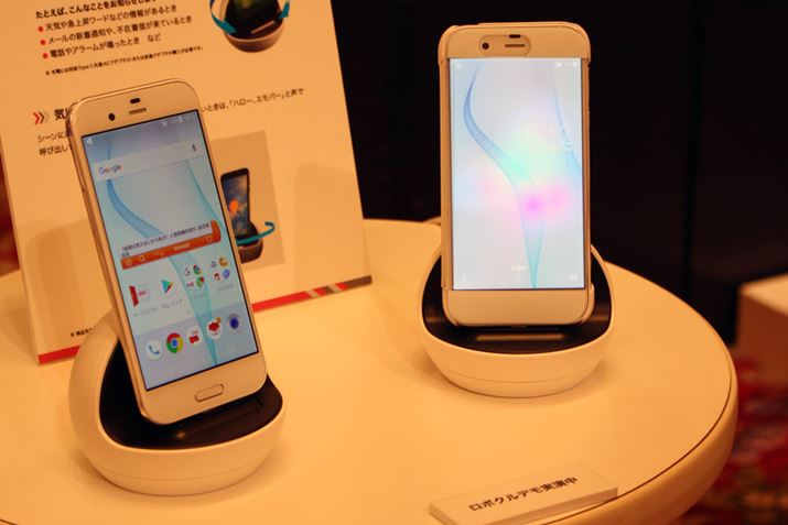同梱される回転機能付きクレードルの「ロボクル」は、サブカメラとシャープ独自のAI機能「エモパー」を組み合わせることで、メールや不在の通知、電話やアラーム、天気など緊急性のあるニュースがある場合に、ユーザーのほうを向いて知らせてくれる。